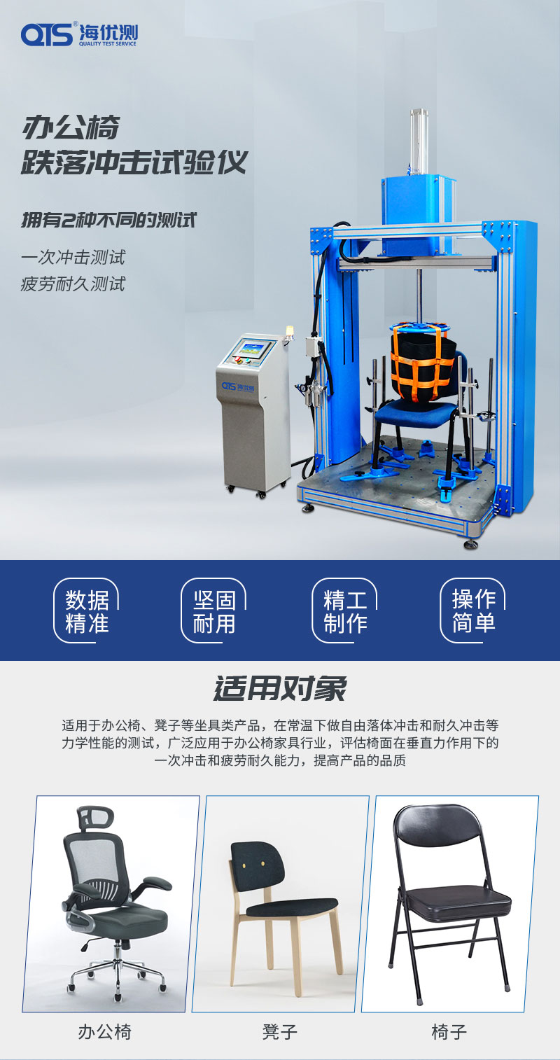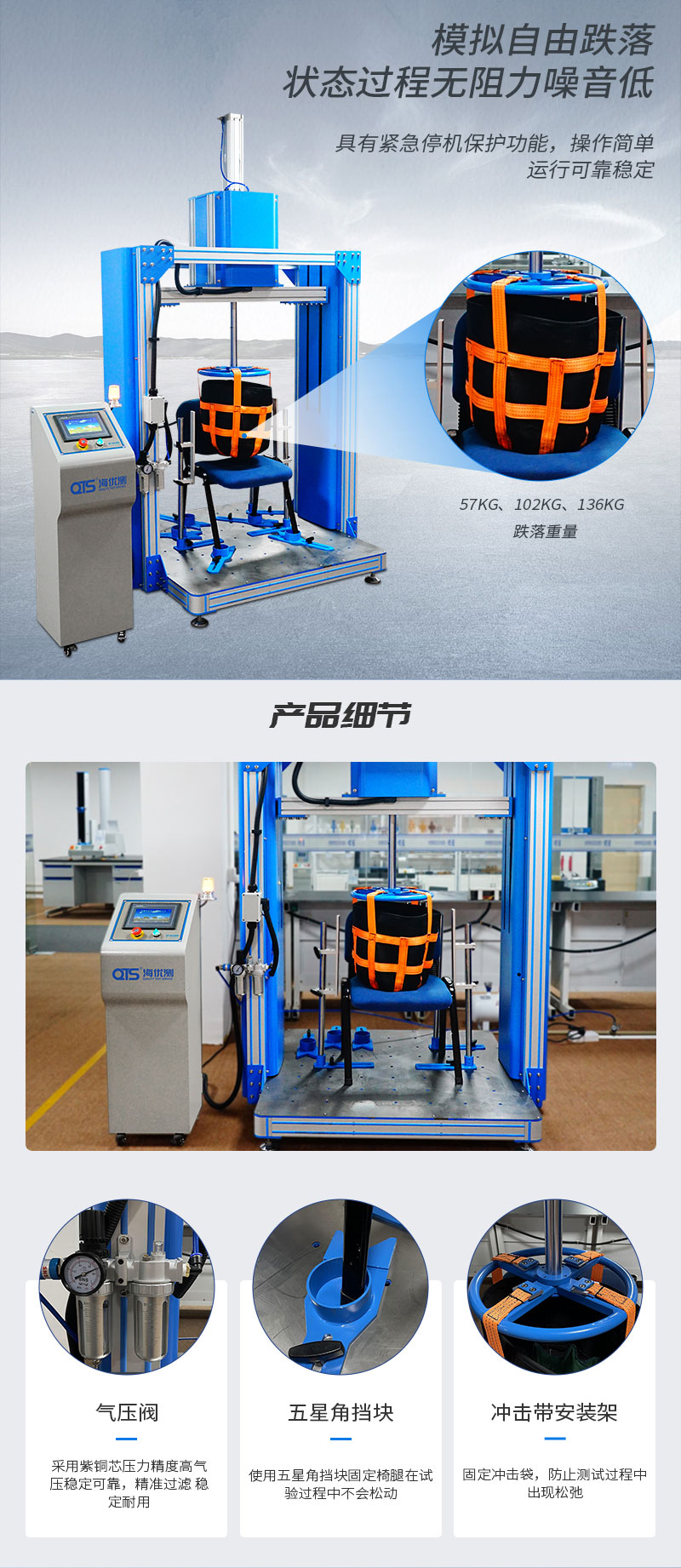 办公椅跌落冲击测试仪测试沙发或家具在运输和安装时发生碰撞时的整体强度;测试座部冲击、扶手冲击、搁腿冲击;本产品测试座部冲击、扶手冲击、搁腿冲击。