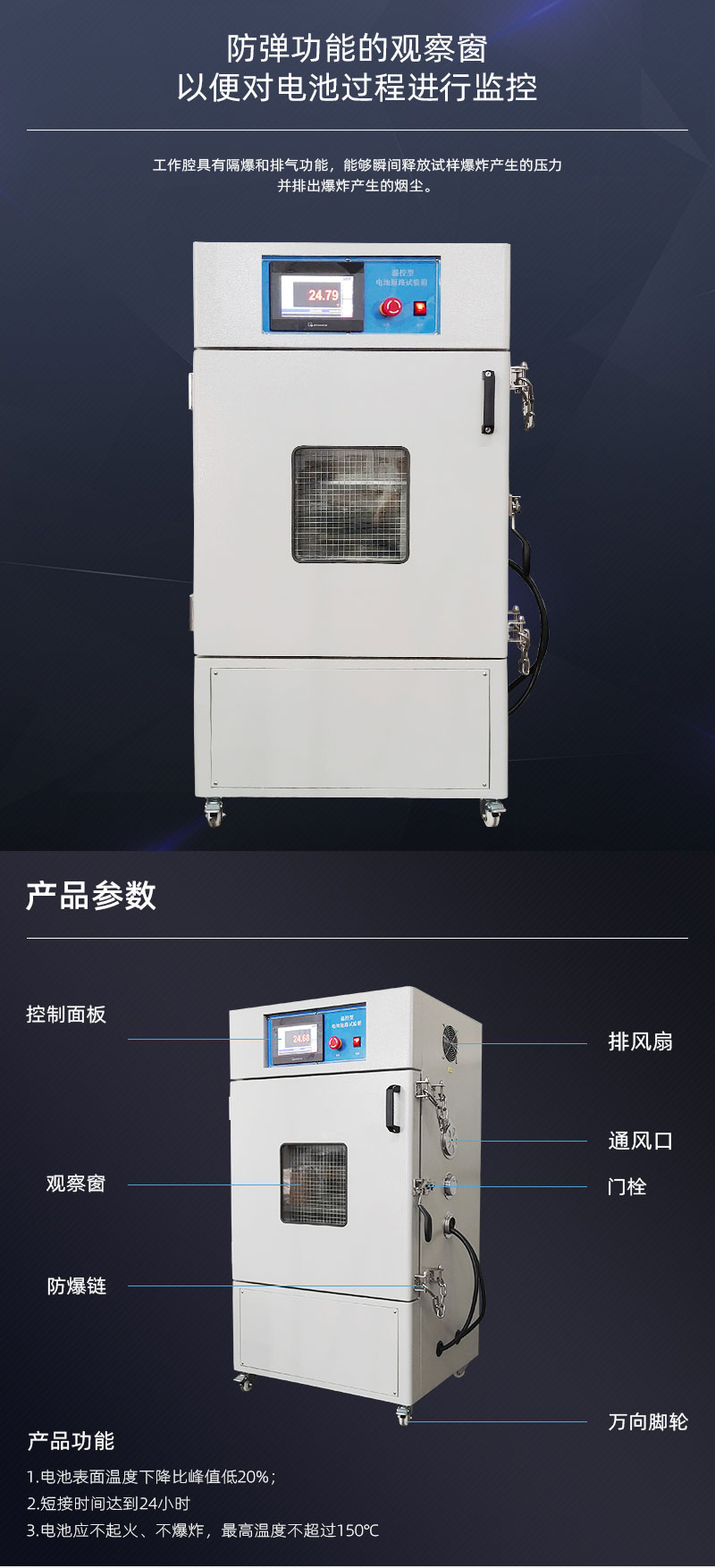 本机用于测试蓄电池在一定电阻短接的情况下是否会出现爆炸起火的现象,同时通过相关仪表显示其短接的上限电流。