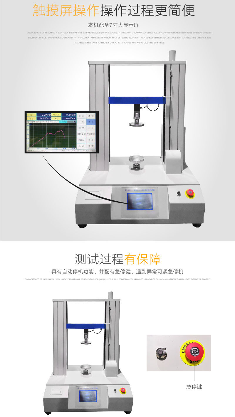 5.力值控制:高精度压力传感器+高性能内核处理器+独立高速采样芯片,确保准确采样与高速运算处理,有效保证测试精度。
