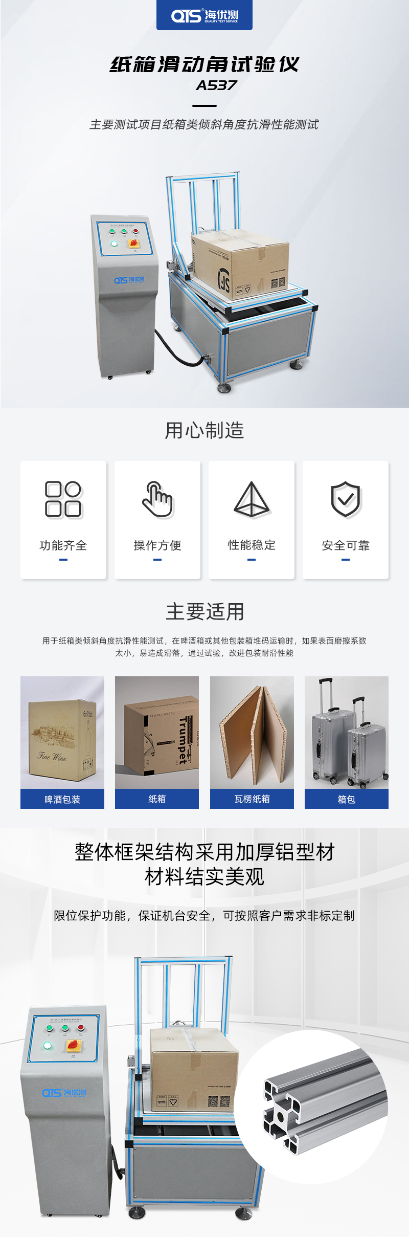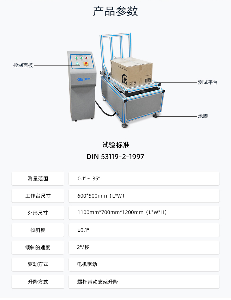 主要测试项目:;纸箱类倾斜角度抗滑性能测试